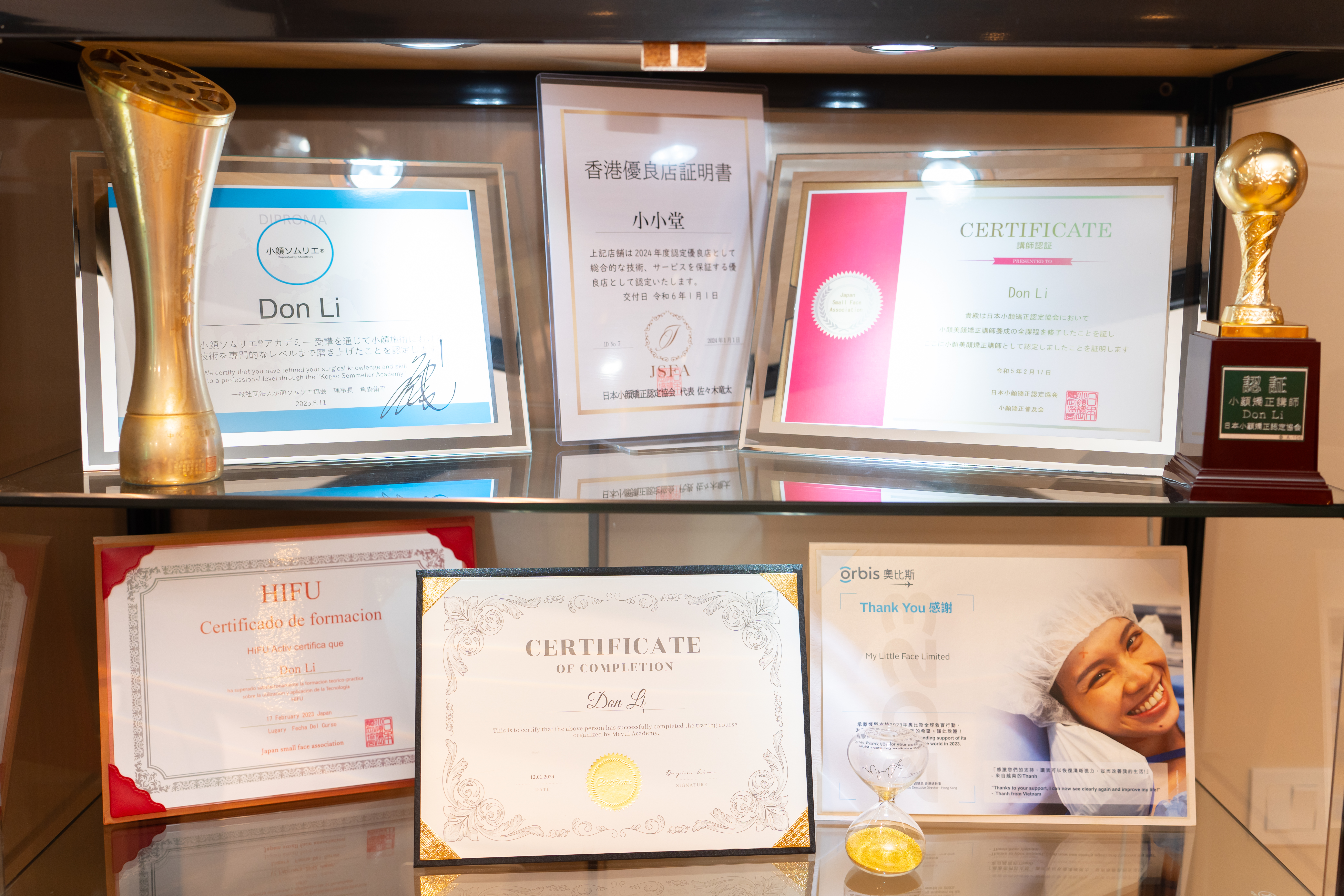 他的小颜技术近日更在国际赛中获得肯定,「呢三年我没放假,日做6至8个客人,我三年内可能做咗人哋十几年嘅量」,「(这份成就)我相信还有上天恩赐,所以我应该把握呢项技术,帮助更多人。」 他指着左手移位凸出的手指关节:「我呢个关节系『做骨』做到劳损,凸咗出嚟,我成日要帮佢消炎、移番佢入去,呢啲系我努力得返嚟。」这份损伤,在他眼中却犹如一个勲章、一份用努力换取的荣耀。 寻寻觅觅,阿Don 感恩找到梦想,「我钟意呢份工,我钟意凭手艺做完客人后,笑住咁送佢走,我系真心,我赚咗啰。」 他看着今天的自己,更充实、更快乐,「以前成日忧虑,我拍完呢部戏,下部几时有人搵我呢?出完呢只唱片,下只有无人买?如果唱片公司唔同我续约,我系乜? 有乜本事继续生活下去? 而家我终于唔驶靠人,靠自己一双手,旅居也好,到哪个国家也好,只要有人有面骨矫正嘅需要,我都不用担心生计。」 比起娱乐圈,他说现在是另一种风光,「当然唔系日日喺报纸、电视出现,而系帮到人,佢哋觉得开心,然后跟其他人分享,我觉得我依家风光㗎!」