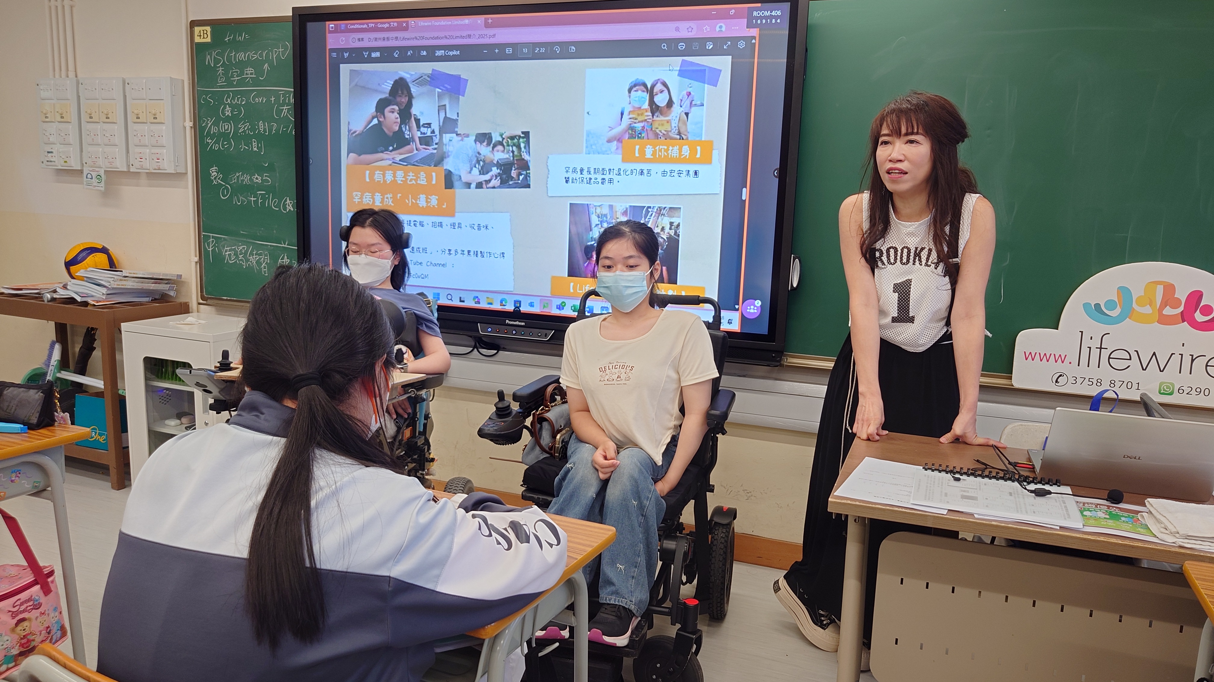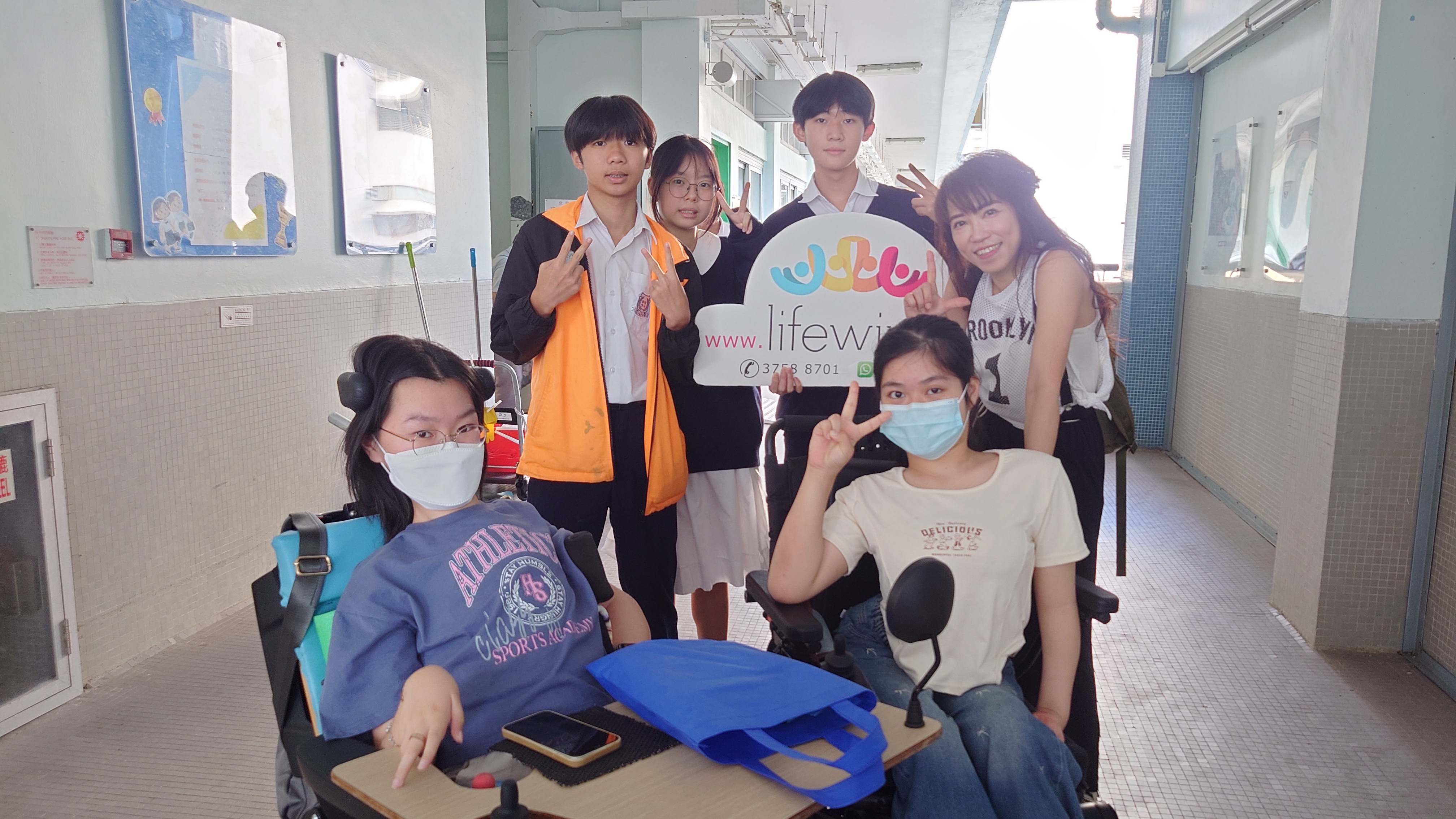 Yeung Ka Ying (Ki Ki), who had Spinal Cord Glioma, and Tse Cheuk Yau (YY), who has spinal muscular atrophy, were invited by the Boys' & Girls' Clubs Association to visit Ma On Shan Chiu Chow Association Secondary School and share their experiences with a group of Form 4 students on Monday (September 29).
