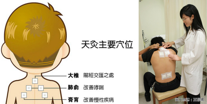 天灸疗法源于古代的中国,已经有数千年歷史,是一种以辛温刺激性的药物,敷贴在特定穴位上的外治法,透过剌激特定穴位,可以温经散寒、疏通经络、行气活血、改善体质,达到治病防病的目的。可改善哮喘、鼻敏感、经常性感冒、慢性胃炎、妇女月经不调、宫寒不孕、手足冰冷、畏寒怕冷、关节风湿疼痛等症状。一般来说,只要年满三岁,年龄越小,治疗效果越好,连续做三年,可减低虚寒性疾病復发的机会。