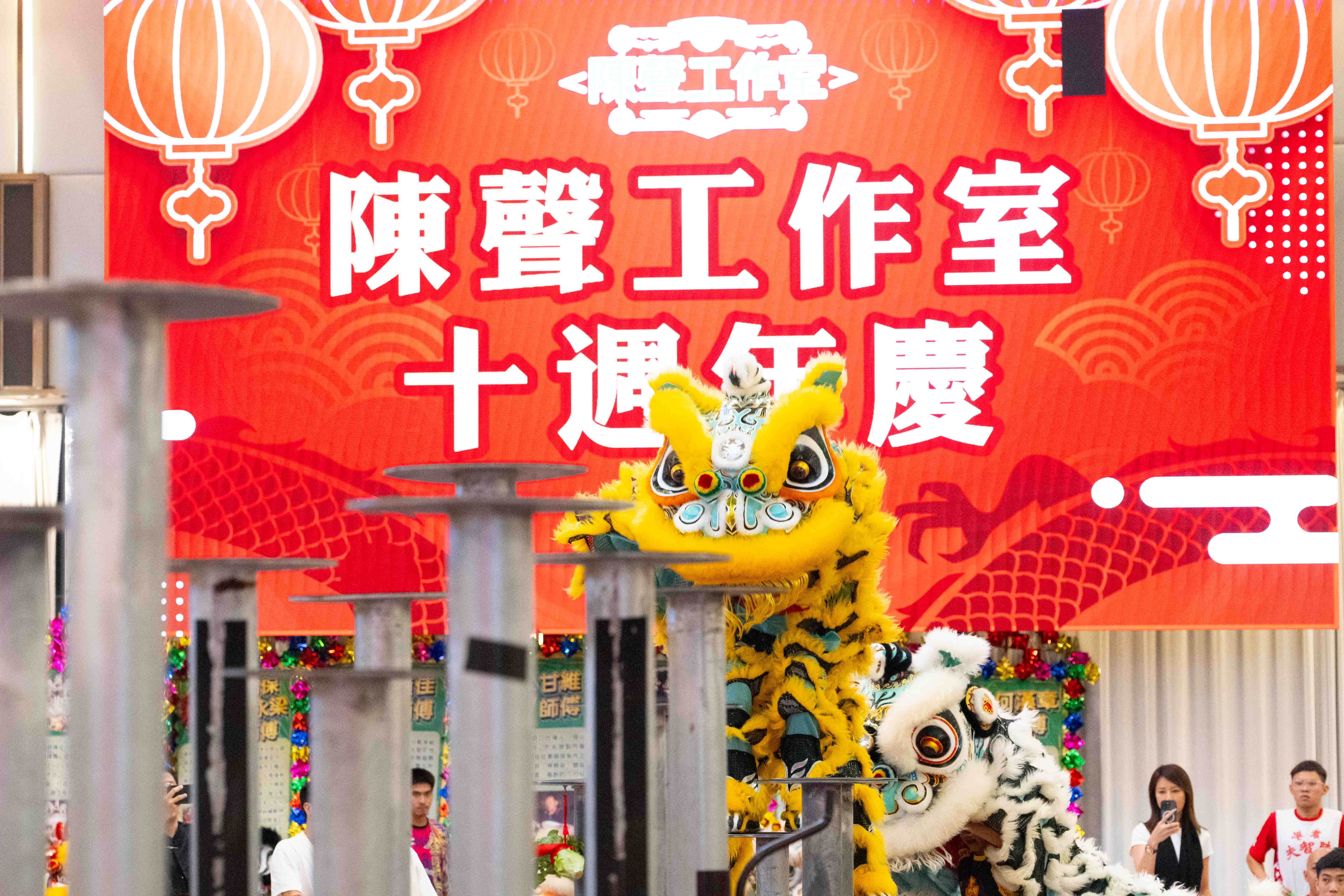 十年?人生有几多个十年?陈声工作室就到咗佢嘅第一个十年嘞!上星期六设宴庆祝!!一向力撑罕见病童嘅声sir梗系请埋Lifewire一齐庆祝!未知罕见病 嘉敏 同 Lifewire大打杂Rochelle 一早到场帮手,声sir仲请来五湖四海嘅醒狮队同名师齐聚一堂,来自广州、台北、大马、泰国、本地等地的狮队献技,场面震撼!!!在场中央的梅花桩上飞来跃去,坐在旁边嘅 杨嘉莹 同 姚心悦和家人,睇到哗哗声!捏一把汗...仲有叠罗汉、战鼓表演,