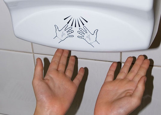 洗手间最常使用的干手方法是什么?干手机?纸巾?为加强环保意识,近年,不少洗手间只会提供干手机。惟英国最新研究指出,干手机竟是传播细菌的工具,相反使用纸巾抺手会更卫生! 英国威斯敏斯特大学研究指出,由于一般人都不会将手彻底清洁干净,然后在使用喷射式出风烘手机时,会把手上可能附着的沙门氏菌、大肠桿菌等细菌传播出去,甚至可将细菌喷到1.5米之外。 威斯敏斯特大学进行研究,比较使用擦手纸、滚筒毛巾、暖风烘手机及喷射式出风烘手机的传播细菌程度。 在距离喷射式出风干手机较近的位置,研究员发现近60个酵母菌群,抹手纸则只有2.2个酵母菌群。喷射式出风干手机的1.5米距离外,有11.5个菌群,抹手纸外1.5米则完全没有。由此证明使用抹手纸,较干手机更衞生。 研究员亦发现,吹出的细菌大多集中在距离地面约0.6至0.9米的空间,与小童高度相若,令他们极易受细菌侵袭,所以不应让小孩站在干手机的出风口下。 而研究负责人Keith Redwa也表示,公共厕所容易出现交叉感染情况,和烘手机传播细菌有关,值得民众关注。而机场、运动场、学校及医院等公共设施,也必须研究哪款干手机更容易传播细菌,进行改善。 研究刊于医院感染期刊(The Journal of Hospital Infection)。