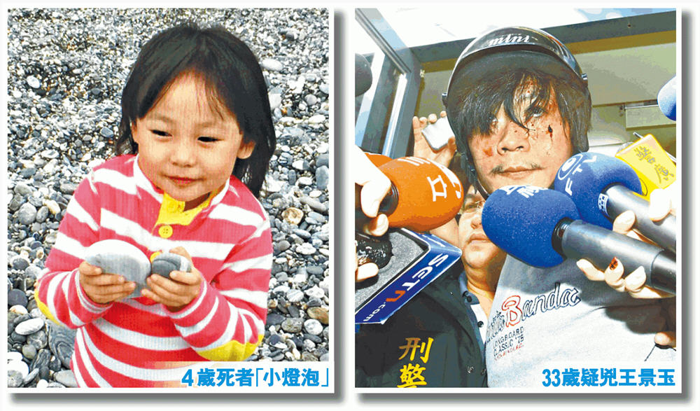 案发现场满地鲜血,女童的单车倒在一旁,情绪崩溃的刘母与相继到场的丈夫,以及孩子的祖父相拥痛哭。而女童祖母受访时更哽咽说:「头都滚到地上了,好可怕,世界上哪有这种事情,神经病,这么残忍!」 33岁的行兇男子王景玉,昨被带返警局问话,声称不认识死者及其家人,随后开口认罪,被问到行兇动机又语无伦次地说:「我要找四川的小女孩传宗接代。」警方初步调查,王昨早在超市大润发买了一把价值219元新台币(约52港元)、斩骨专用的大切肉刀,然后回住处附近的西湖国小找寻目标。案发现场附近的闭路电视拍到,王在大街游荡,直至见到姓刘母女才过马路杀人。警方表示,王发现骑车女童后,以跑步方式逼近,先用右手压女童后颈,左手持刀先砍后切。