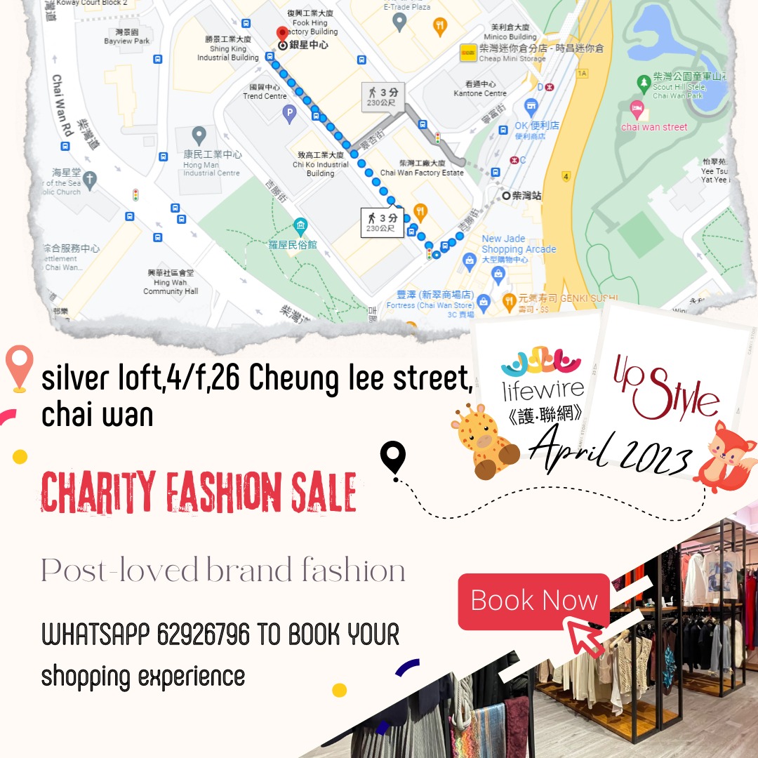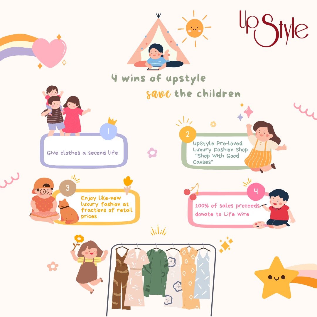 Upstyle喺一間二手名牌時裝店,店内以優惠價格出售名牌衫,手袋,鞋同飾物。希望將資源循環再用並回饋社會,所以本月義賣所得收益將全數捐贈Lifewire! 您嘅支持,將為罕見病家庭紓解困局,令更多病患家庭受惠,支援佢哋長遠嘅醫療開支。