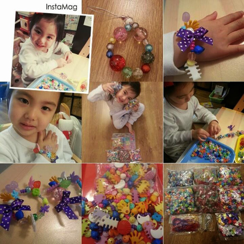 今天,我為了照顧一個沛沛,沒有做上一份全職工作。雖不是為了賺多幾塊錢,但沛沛和我在家也時常穿珠,為的是訓練小肌肉、專注力,創意無限發揮,也是我們在家避暑的親子活動之一。沛沛自家DIY的作品也不錯,她穿好了手鍊、掛飾便送給親人朋友,可是尚未有一條是送給我,我還在排隊等候中。