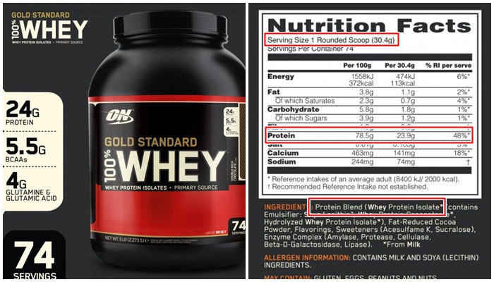 最簡單的方法就是看成分表裏的量來作計算,將每一Serving所含的蛋白質重量(g)除以每Serving的乳清粉重量(g)就可以知道蛋白質含量是幾%了。蛋白質比率越低的乳清,代表不必要的澱粉和脂肪越多。另外,最重要的關鍵要素是消化效率,即是乳清能在30分鍾內分解成胺基酸給肌肉吸收的效率。吸收越快,肌肉的成長效果就越好。而乳清種類的優劣正是決定吸收快慢的關鍵,以吸收效率的排名:水解式乳清(Hydrolysed)>分離式乳清(Isolate)>濃縮乳清(Concentrate)。水解式乳清的蛋白質含量最高可達90%,分離式乳清大多落在80%,乳清濃縮則落在70%~80%之間,質量較差的有時會低到30%。